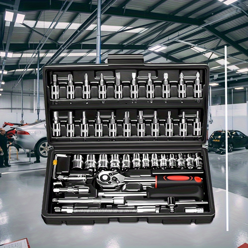 46pcs Mechanical Tool Socket Set, 1/2" 1/4" 3/8" Drive SAE and Metric Sizes, Universal Ratchet Wrench Set with 72-Tooth Ratchet for Automotive, Home, Garage, Bicycle Trunk