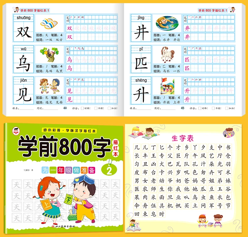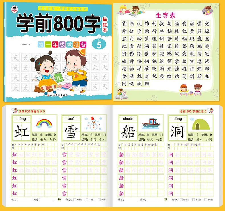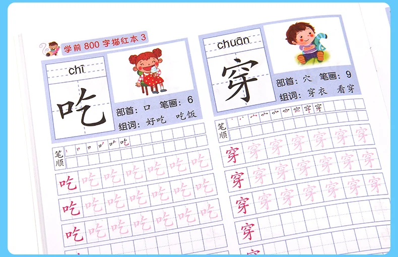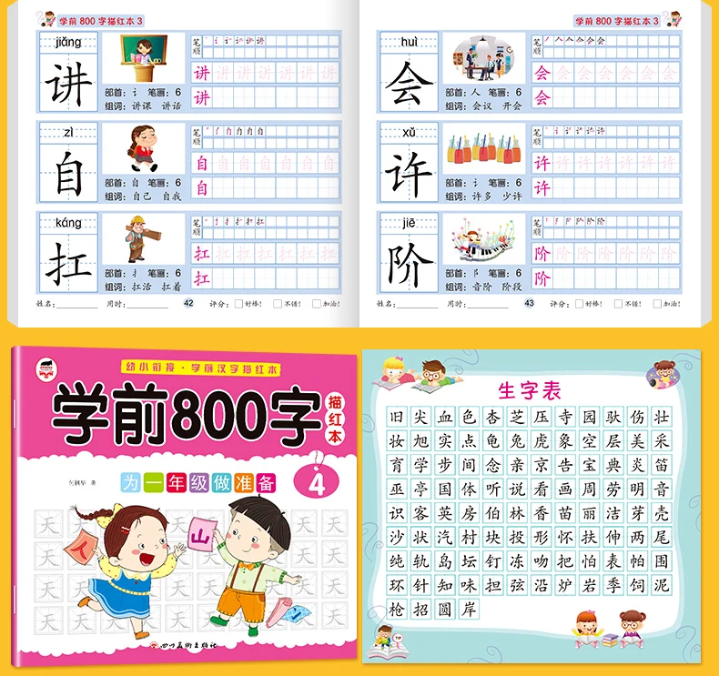 8 Books/set Children Pencil Chinese Tracing Red 800-Character Preschool Children Aged 3-6 Practice Copybook Early Education Book