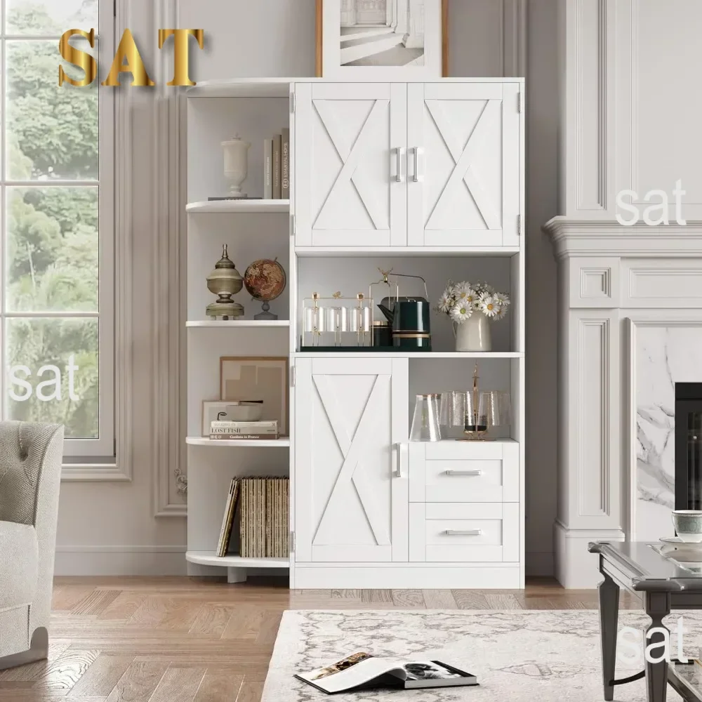 # Hot 60.4" Kitchen Storage Cabinet, Freestanding Kitchen Shelves With Doors And Shelves, Dining Sideboard With Microwave Shelf,