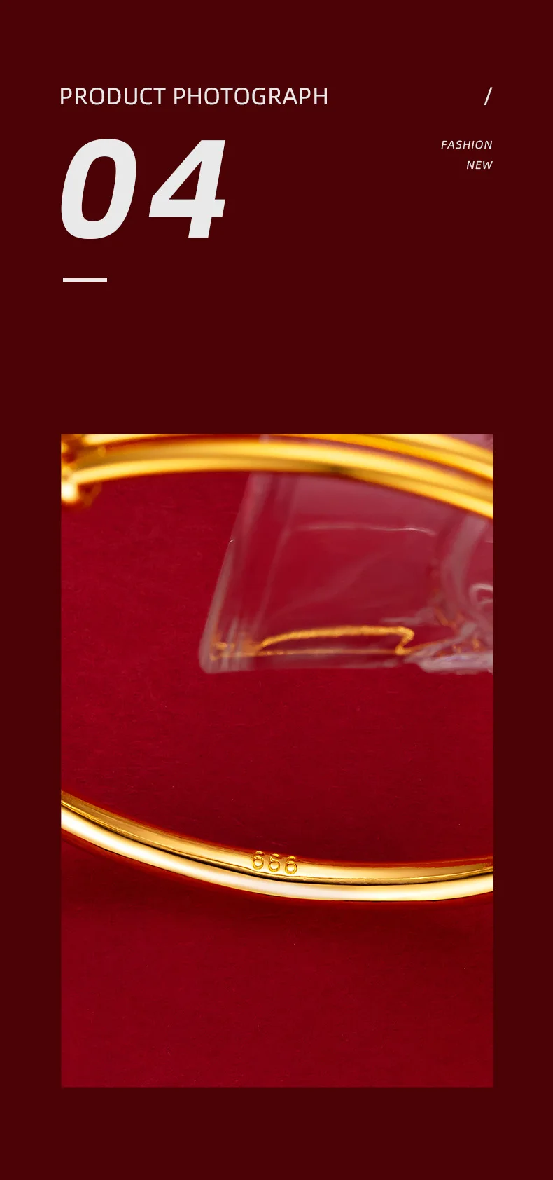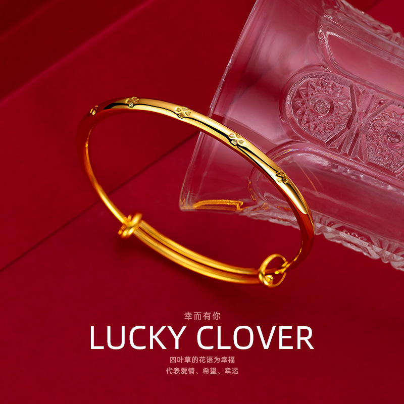 Pure 18k Yellow Gold Lucky Bracelet for Women Trend Gold Grass Smooth Push and Pull Handle for Women Jewelry